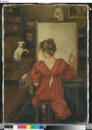 Fundmeldung Interieur (Mädchen vor einer Staffelei mit kleinem Hund) Hersteller/Künstler:in Rau, Georg Wilhelm AD. Objektart Gemälde Material / TechnikÖl ; Leinwand / gemaltLost Art-ID596130
