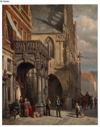 Fundmeldung Stadtwache und Rathaus in Münster Hersteller/Künstler:in Springer, Cornelis Objektart Gemälde Material / TechnikÖl ; Holz (Mahagoni) / gemaltLost Art-ID620165