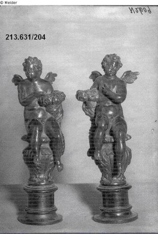 Suchmeldung Sitzender Putto mit Füllhorn (Paar) Hersteller/Künstler:in Unbekannt (Deutsch (Süddeutschland)) Objektart Plastik / Skulptur Material / TechnikMetall (Bronze) ; HolzLost Art-ID301840