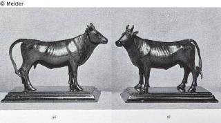 Suchmeldung Zwei Kühe Hersteller/Künstler:in Unbekannt (Niederländisch) Objektart Plastik / Skulptur Material / TechnikMetall (Bronze) / ziseliertLost Art-ID427708