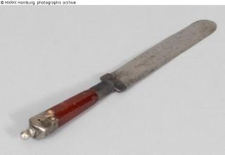 Fundmeldung Schächtmesser Hersteller/Künstler:in Unbekannt Objektart Ritualgegenstände und Zubehör Material / TechnikMetall (Stahl) ; Holz ; Metall (Messing) / damasziertLost Art-ID626359