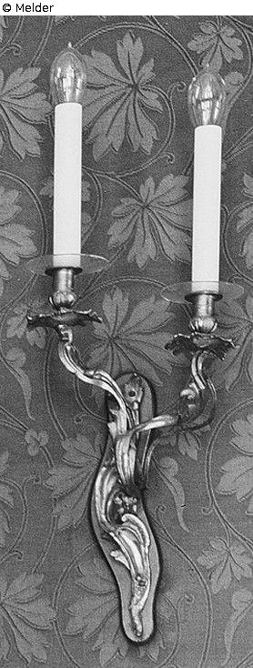 Dresdner Schloss, Bärengartenflügel, 2. OG, Wohn- oder Arbeitszimmer des Kaisers; Im Inventarverzeichnis Nr. 1 vom 31.01.1920 als Bestandteil des Auseinandersetzungsvertrages des Freistaates Sachsen und dem vormaligen Königshaus von 1924 aufgeführt, welche dem „Staat“ zufallen; Ein genauer Bergungstermin ist nicht aktenkundig, die Bergungsmaßnahmen wurden im Sommer 1944 beendet. Wahrscheinlich wurden die Spiegelwandleuchter am 26.04.1944 ausgelagert und nach dem Bergungsort Schloss Rammenau verbracht; Zu den Verlustumständen dieses Objektes ist nichts bekannt. Ein Verlust mit den Ereignissen im Zusammenhang des 2. WK wird vermutet.