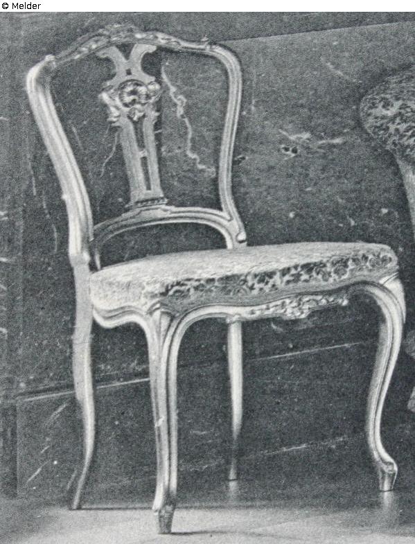 Die Stühle kamen nach dem Umbau des Großen Ballsaales 1880-1882 in den Saal. Die Beauftragung der Fa. Türpe erfolgte am 25.04.1882. Die Stühle wurden in zwei Lieferungen im August 1882 dem Hausmarschallamt übergeben hat. Die Stühle standen nachweislich 1920 im Residenzschloss Dresden, Nordflügel, 2. OG, Großer Ballsaal; Gemäß dem Auseinandersetzungsvertrag von 1924 fielen Sie dem Freistaat Sachsen zu; Im Jahr 1944 wurden die Stühle an einen Bergungsort gebracht. Die Auslagerungsliste der Dresdner Schlossverwaltung für den Bergungsort Schloss Zottewitz weist eindeutig „59 blaugrüne Ballsaalstühle“ auf. Verlust am Auslagerungsort kann nicht ausgeschlossen werden.