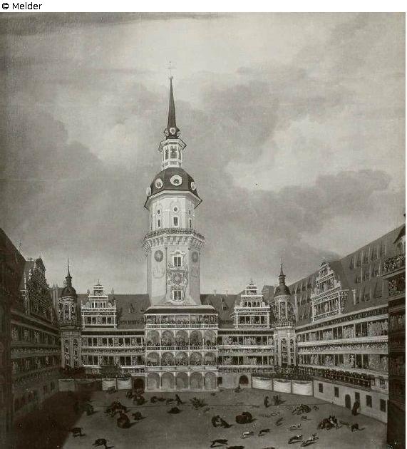 Bestandteil des Auseinandersetzungsvertrages des Freistaates Sachsen und dem vormaligen Königshaus von 1924, wird unter „Schloß I. Et. Steingang“, „1 Ölgemälde Großer Schloßhof VI.66.”