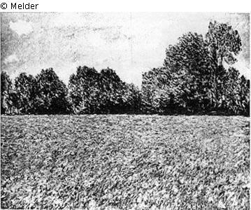 Mohnfeld im Vordergrund und Bäume im Hintergrund. Bezeichnet u. r.: Claude Monet 87