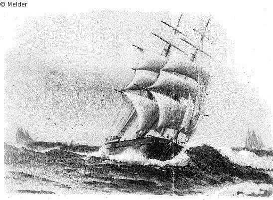 Darstellung einer Brigg unter vollen Segeln mit dem Namen des ersten Eigentümers des Gemäldes am Bug "Robert Sprenger" oder "Kapitän Robert Sprenger".