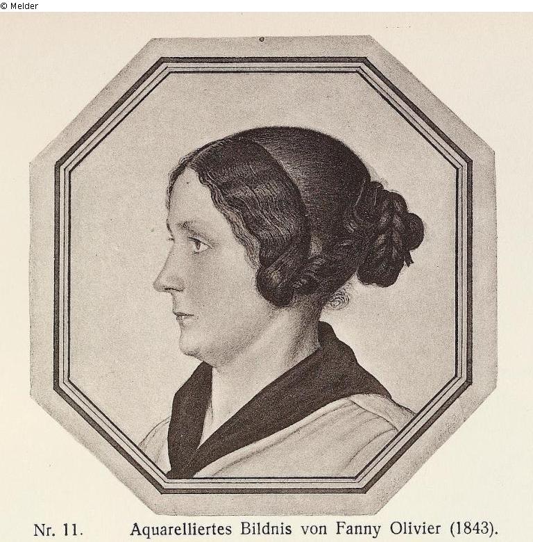 Brustbild seiner Frau Fanny Olivier im Profil nach links