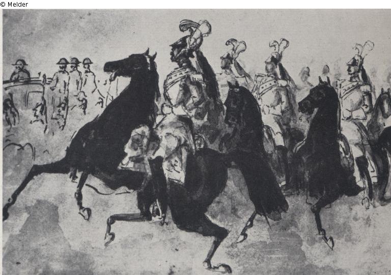 Cent gardes suivant le carrosse de l'empereur / Hundert Wachen folgen der Kutsche des Kaisers