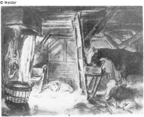 Suchmeldung | Einzelobjekt Das Innere eines Stalles mit Pferd, Kuh und Kalb Lost Art-ID181997 Vorherige Weiter Hersteller/Künstler:in Rijn, Rembrandt Harmensz. van Geburt 1606.07.15, Leiden Tod 1669.10.04, Amsterdam WirkungsortLeiden; Amsterdam TitelDas Innere eines Stalles mit Pferd, Kuh und KalbObjektartZeichnungObjektgruppeGrafikMaterial / TechnikFarbe braun / gezeichnet (Feder) ; gezeichnet (Pinsel) Höhe 15,00 cm Breite 19,00 cm InventarnummerC 1334Beschreibung Pinsel in Braun Weiterlesen Weniger anzeigen BestandAbteilung C – ZeichnungenProvenienz Aus Sammlung Gottfried Wagner, Leipzig, 1728. Weiterlesen Weniger anzeigen Veröffentlicht seit2001 Kontakt Staatliche Kunstsammlungen Dresden Kupferstich-Kabinett Taschenberg 2 01067 Dresden Deutschland Tel(0351) 4914 3210E-Mailkk@skd.museumHomepagehttps://www.skd.museum Ansprechpartner:in DirektionTel(0351) 4914 3210E-Mailkk@skd.museum