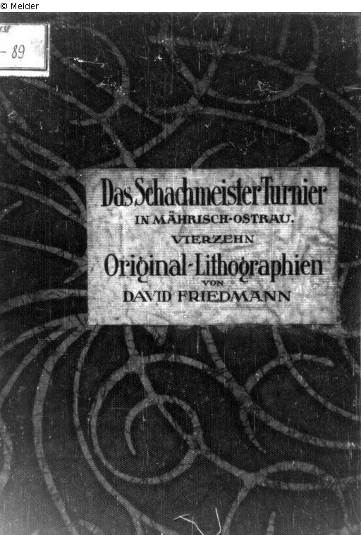 Vermutlich wurden nur drei Mappen gedruckt. Mappen enthielten 14 Original-Lithographien von Dav. Friedmann. Portraits von: Lasker, Réti, Grünfeld, Selesnieff, Euwe, Tartakower, Bogoljubow, Tarrasch, Spielmann, Rubinstein, Pokorný, Hromádka, Wolf, Walter. Vermutlich wurden nur drei Mappen gedruckt. (Abbildungen: Mappe außen, in verschiedenen Brauntönen; Titelblatt der Mappe.)