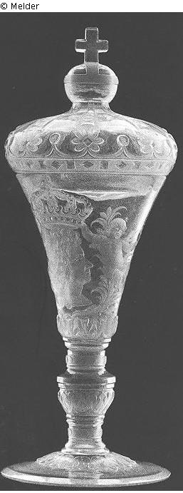 Suchmeldung | Einzelobjekt Deckelpokal mit gekröntem Profilbildnis König Friedrichs I. Lost Art-ID406083 Vorherige Weiter Hersteller/Künstler:in Spiller, Gottfried Geburt (um) 1663, Hirschberger Tal (Schlesien) Tod (vor) 1728.04.09, Berlin WirkungsortBerlin TitelDeckelpokal mit gekröntem Profilbildnis König Friedrichs I. Datierung1701 (nach)ObjektartGefäßObjektgruppeKunsthandwerk / -gewerbeMaterial / TechnikGlas / geschliffen (Hochschnitt)Provenienz Hohenzollernmuseum, Schloss Monbijou, Berlin; Verlust 1945. Weiterlesen Weniger anzeigen Veröffentlicht seit2008 Ansprechpartner:in Michaela BlankartPositionGeneralverwaltungTel+49 (0) 30 803 1138E-Mailberlin@preussen.de Ansprechpartner:in Stefan SchimmelPositionKunstsammlungenTel+49 (0) 30 803 1138E-Mailschimmel@preussen.de