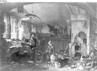 Der Alchimist mit der Flasche in der Hand