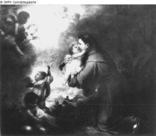 Tafelmalerei: Bild: das Christuskind erscheint dem heiligen Antonius von Padua, er umarmt es oder huldigt ihm; Christuskind; umarmen; anbeten