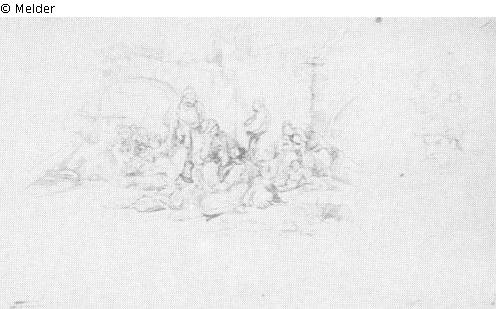 Gefangene Griechen in Ruinen lagernd