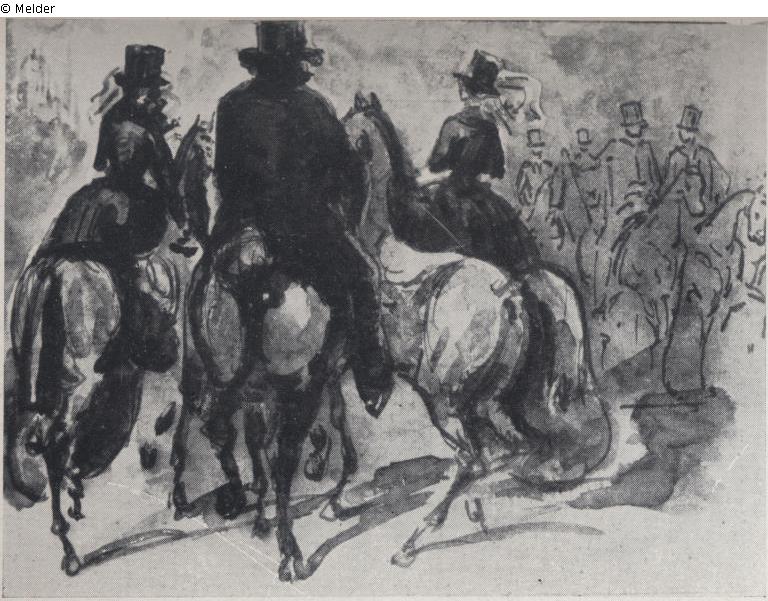 Groupe de cavaliers et amazones au bois de Boulogne / Gruppe von Reitern und Amazonen im Bois de Boulogne