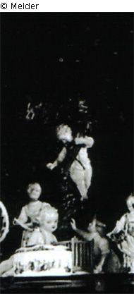 Katalog Hans W. Lange / Auktion 18.-19.11.1938, Kapitel "Porzellan. Wien", S. 83: "632. Kindergruppe: Die Apfelernte. Auf einem Baum steht ein Knabe, der einem Mädchen einen Apfel in die Schürze wirft; daneben ein kniender Knabe. In natürlichen Farben bemalt. Goldhöhungen am Sockel. Abstoßungen. Marke: Bindenschild. Wien, um 1760. H. 25 cm."