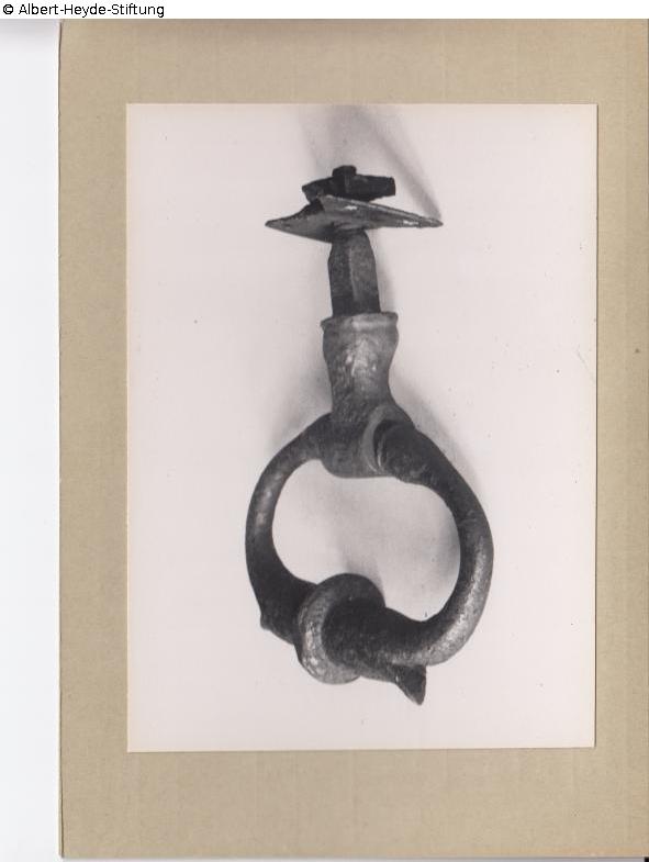 Ovaler Eisenring, beweglich montiert, Gewinde mit Deckplatte und Mutter.
