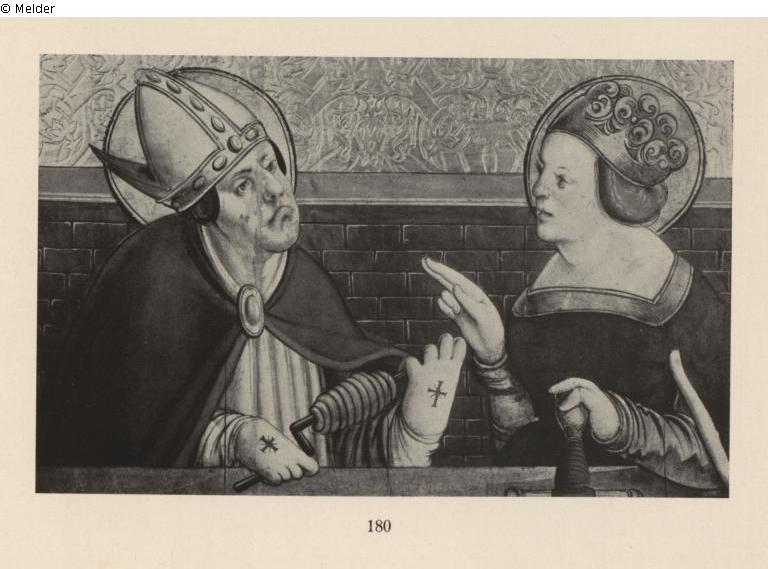 Hl. Erasmus und Hl. Katharina, Halbfiguren vor Goldgrund.