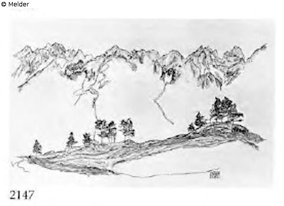 nach Werkverzeichnis Kallir: KD No: 2147; Titel: Hochgebirgslandschaft; Gouache und schwarze Kreide. Signiert und datiert unten rechts. Verbelib unbekannt.