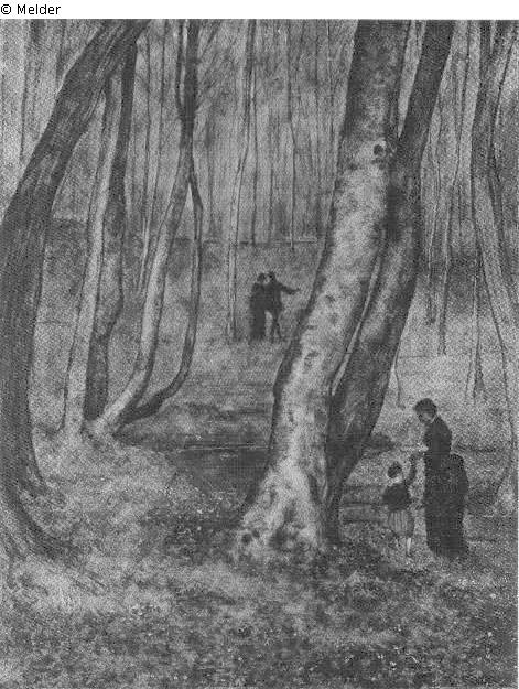 Frau mit Kind, nach Hinten ein weiteres Paar; bez. H. T.
