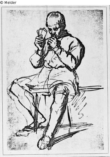Farbe braun / gezeichnet (Feder)