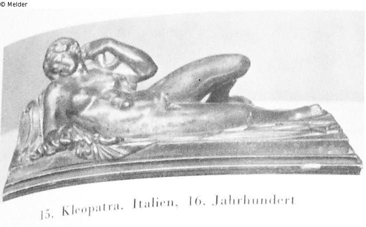nackt, auf Ruhebett liegend. Bronze. Die Schlange hält sie um ihren Nacken gerollt. Holzsockel; Quelle: Galerie Fischer: Große Kunstauktion in Luzern. Sammlung Frau Hermine Feist, Wannsee u.a. am 20., 21., 23. und 24. Mai 1941. Luzern 1941. Katalognummer 15; Auktionsvertrag zwischen Dr. Hans Feist und Dr. Theodor Fischer vom 28.10.1940, in: Nachlaß Feist, in: Literaturarchiv Marbach; Abrechnung [...] über die verkauften Nummern an der Auktion vom 20./24.05.1941, in: Nachlaß Feist, in: Literaturarchiv Marbach.