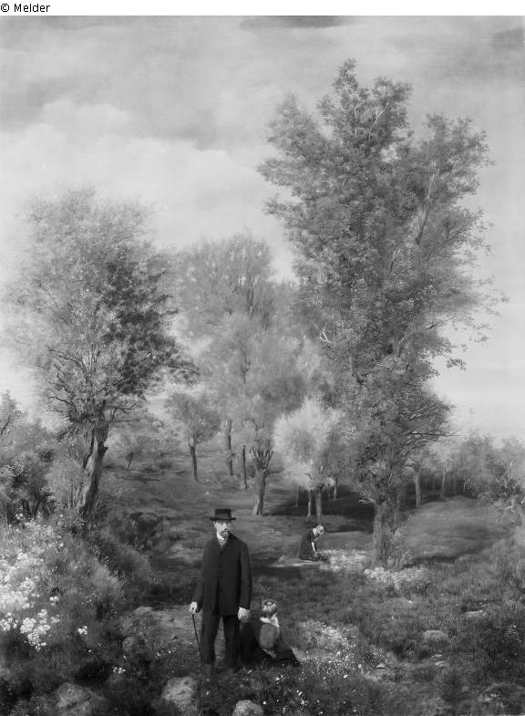 Selbstbildnis mit Hut, die Mutter sitzend in Rückenansicht, eine Frauengestalt