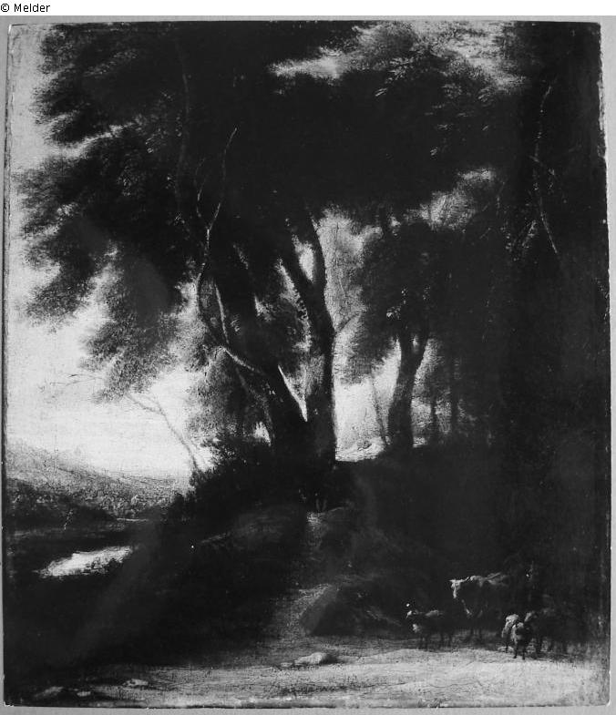 Landschap / Waldlandschaft mit Hirten und Vieh