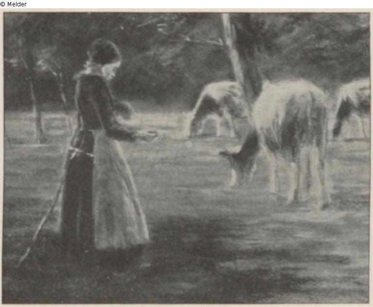 Rosenhagen, Hans: Liebermann. Erstmals erschienen 1900/2, erweiterte Auflage 1927. Knackfuß-Künstler Monographie XLV, Bielefeld/Leipzig 1900 und 1927; B Rep 025_02 Nr 2819_50 S. 35 Rosenhagen-Gutachten 13. Dezember 1927; OFP Akte O 5210_ 2264_42 Klaus Ascher_ 204A MdF 2598, Gestapo-Versteigerungsauftrag 1941, Gestapo-Beschlagnahme 1942; Auktionsprotokoll Alfred Berkhan, Auktionshaus Versteigerung von Klaus Otto Ascher Umzugsgut am 5.-11. November 1941; Wiedergutmachungsakte 2 WGA 2819/50, B Rep 025_02 Nr 2819_50, Seite 105-106, Liste der geraubten Kunstwerke, 7. Oktober 1954; Hampel Kunstauktionen: Die Max Liebermann Auktion. Die Sammlung Hans-Georg Karg. Bedeutende Werke von Max Liebermann. 22. September 2005. Lot 21: Max Liebermann, 1847-1935 Berlin: SPINNENDE KUHHIRTIN AUF DER WEIDE - »IM SONNENSCHEIN« (um 1895); Leopold Museum: AMAZING: The Würth Collection. Exhibition 05.04.2023 - 10.09.2023. Vienna. Vienna/Cologne 2023. PP 32, 392