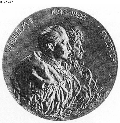 Vs.: Brustbilder König Friedrichs I. und Kaiser Wilhelms II.; Umschrift: WILHELM II 1696-1896 FRIEDRICH I (Signatur) P. SCHULZ SC. O. SCHULTZ F.