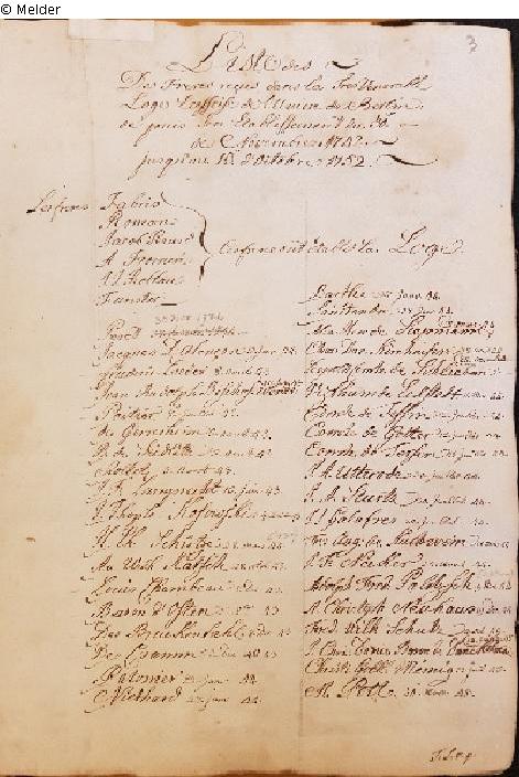 Registre des Personnes proposées et refusées admises et reçuës dans Notre Tres Venerable et tres Respectable Loge Ecossoise De l'Union Depuis sa fondation du 30. Novemb 1742 jusqu'á present, (S. 117-140).