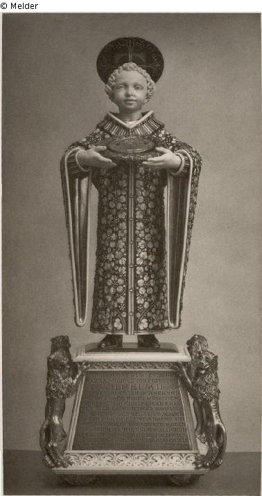 Münchener Kindl als Träger der dem Kaiser Wilhelm II. am 18. September 1909 von der Stadt München überreichten goldenen Bürgermedaille