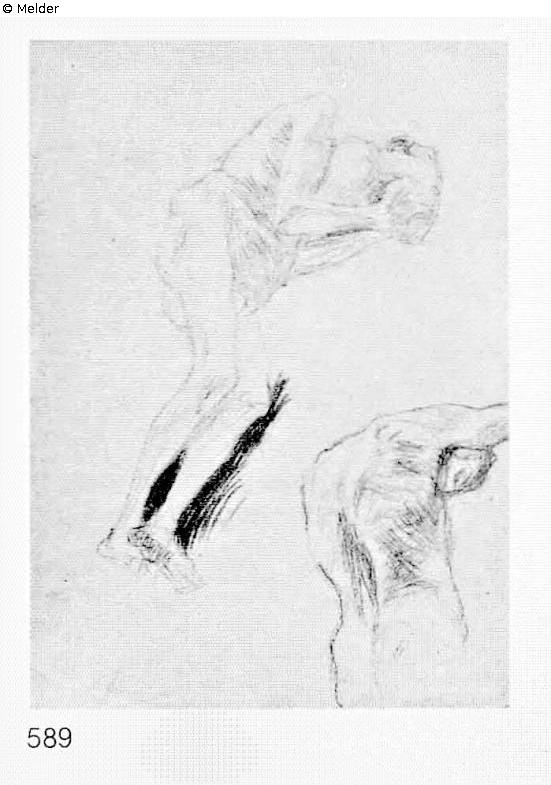 nach Werkverzeichnis Strobl: Fakultätsbild Medizin 1901-1907 (Novotny-Dobai Nr. 112); In der Übertragungsskizze verwendete Studien Kat. Nr. 582-592; Strobl Werkverzeichnis No.: 589; Titel: Nackter Greis und männlicher Rückenakt nach rechts