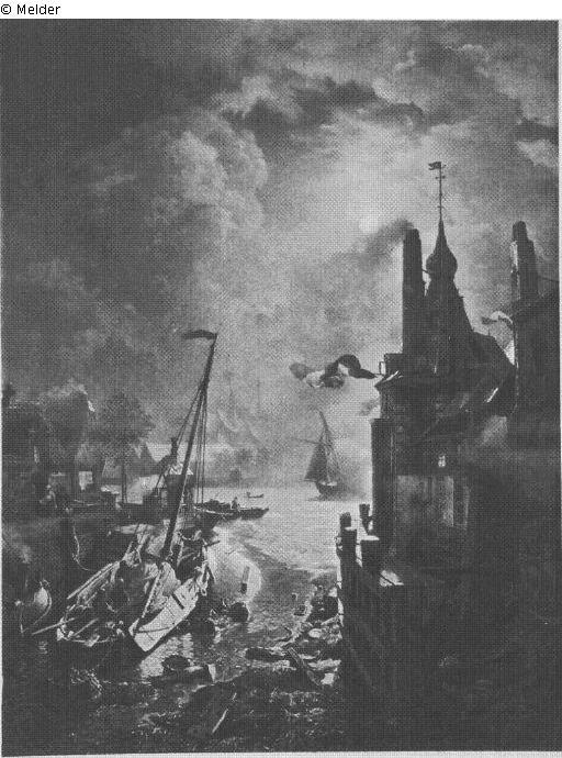 Niederländischer Hafen bei Mondschein