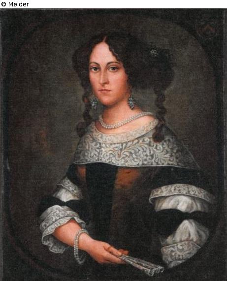 Gemälde gehört zur Ahnengalerie der Familie Keller, deren Originale während des Zweiten Weltkriegs auf der Festung Ehrenbreitstein durch den letzten Besitzer Dr. Robert Keller (1866-1958) in Koblenz eingelagert wurden. In der Stammtafel der Familie ist der Hinweis gegeben, dass das Gemälde-Pendent ihres dargestellten Mannes wahrscheinlich gestohlen wurde, weshalb die Vermutung nahe liegt, dass auch ihr Gemälde i.Z.d. verschwand.