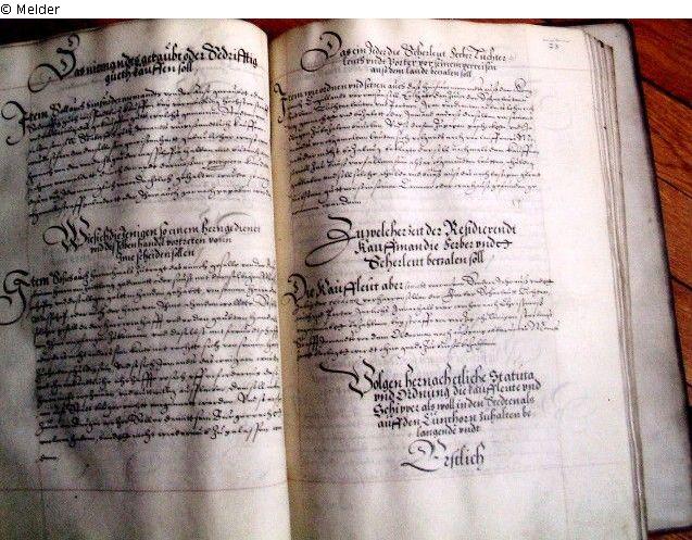 Der handschriftliche Codex enthält Privilegienabschriften sowie die Ordnung des Londoner Stalhofes. Er ist durch den Stempel "Staatsarchiv Lübeck" als Eigentum des Archivs der Hansestadt Lübeck eindeutig identifizierbar.