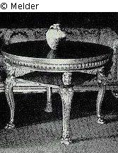 Union 1938: "auf vier geschwungenen Klauenfüßen, Eiche mit Marmorplatte."