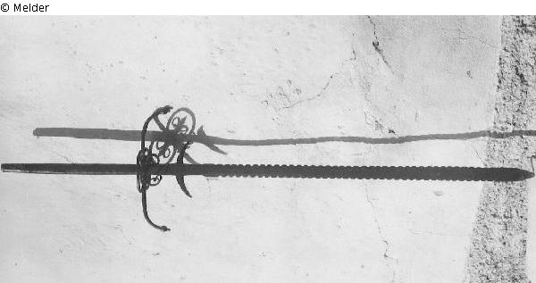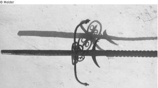 Schwert Detailansicht vom Griff, Griffringen, Parier.
