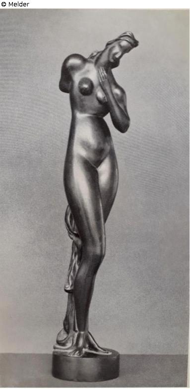Tentoonstelling van Moderne Kunst, Ausst. Kat. Amsterdam, Kunsthandel J. Goudstikker N.V., Oktober 1933, o.O. 1933, Kat.-Nr. 1 (?) 'Staand naakt', ohne Abb.; Zwei Zürcher Sammlungen: Werner Bär Plastik - Kurt Sponagel Graphik, Ausst. Kat. Zürich, Kunsthaus Zürich, 19. August-19. September 1959, Bern, Kunstmuseum Bern, 26. September-15. November 1959, Zürich o.J. [1959], S. 13, Kat.-Nr. 1 'Stehender Frauenakt, 1921, Bronze, Höhe 66 cm, erworben 1934', Abb. 7; Sammlung Werner und Nelly Bär, hg. von Kunsthaus Zürich, Weinfelden 1965, S. 234, Abb. 22; Sculptures and Drawings from the Werner and Nelly Bär Collection, Zürich, Auk. Kat. London, Sotheby's, 30. März 1977, London 1977, Los-Nr. 72 [unverkauft]; Alexander Archipenko Foundation (Hg.), Alexander Archipenko - Catalogue Raisonné, Online-Publikation, URL: Externer Link Stand: 12.04.2023, Kat.-Nr. 5937, 'Woman Standing, Stehenende Frau, 1921, bronze, 64 cm, Werner and Nelly Bär, 1934, Private collection (acquired at Sotheby Parke Bernet London, 30 March 1977, lot 72); Kunsthaus Zürich, Archiv 2001/002:075, Bl. 61, Verzeichnis der Sammlung Hugo Simon, 29.05.1934 [Liste Zürich 1934]​​​​​; Kunsthaus Zürich, Archiv 2001/002:075, Bl. 455, Brief von Wilhelm Wartmann an Hugo Simon, 14.10.1934