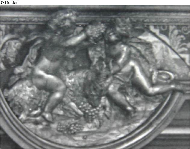 Unteres Relief mit Wein lesenden Putten eines Prunkspiegels