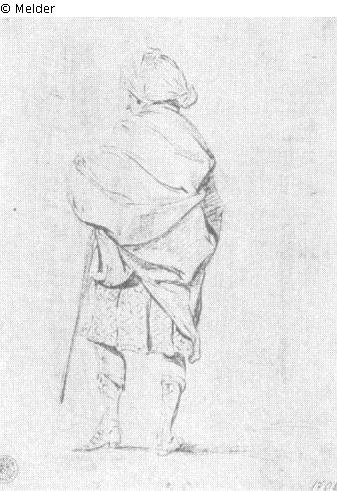 Vom Rücken gesehener Mann in phantastischer antikisierender Tracht