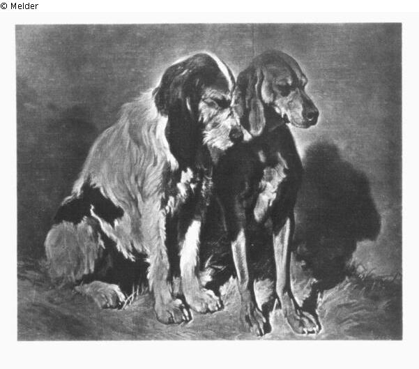 Zwei sitzende Jagdhunde