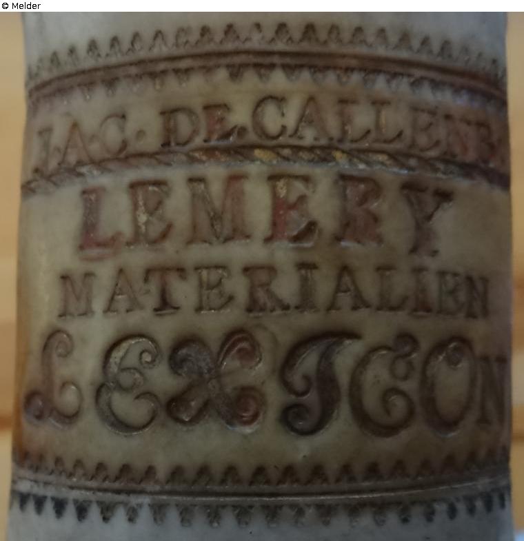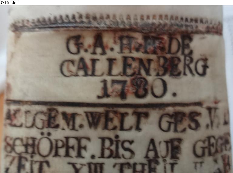J. A. C. DE CALLENBERG (Johann Alexander Reichsgraf von Callenberg 12.3.1697 - 13.2.1776)goldene Schrift, drei Zeilen mit Jahreszahl