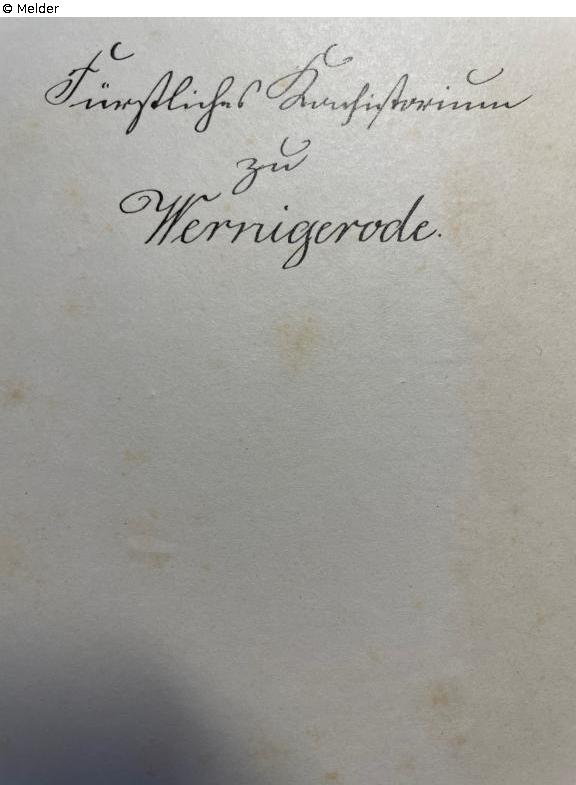 • Sammlungen S. D. des Fürsten zu Stolberg-Wernigerode