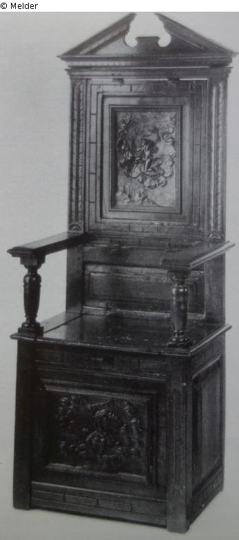 Boc chair with carved panels, gable is replaced