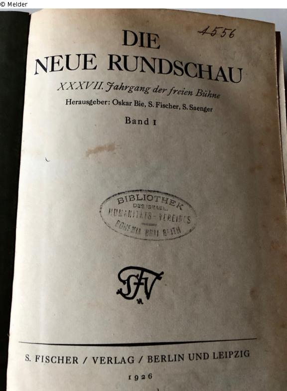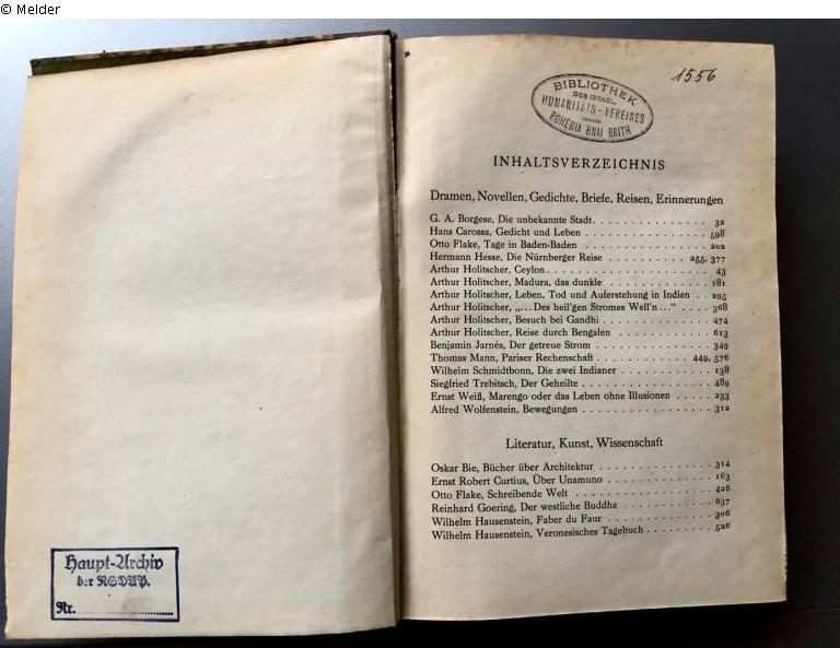 2 hardbound half-year volumes with stamp "BIBLIOTHEK DES ISRAEL. HUMANITÄTS-VEREINS - BOHEMIA BNAI BRITH" and additionally stamped "Haupt-Archiv der NSDAP Nr. ....".