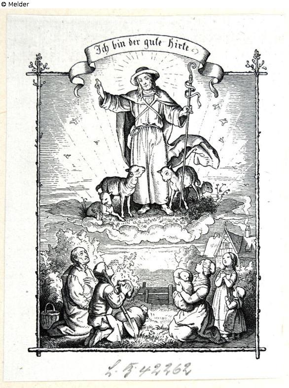 Found-Object Report | Object report Early in the morning Jesus goes, I am the good shepherd Lost Art-ID579195 Previous Next Artist / Creator Richter, Ludwig (1803) Birth 1803.09.28, Dresden Death 1884.06.19, Dresden Place of activityRom; Dresden; Meißen TitleEarly in the morning Jesus goes, I am the good shepherd Dating1855Object typePrintGroup of reported objectsGraphicMaterial / TechniquePaper / printed (woodcut) ; printed (artists' proof) Height 10.60 cm Width 7.90 cm Inventory numberA 1985-467Holding Erwerbungen für das sogenannte Führermuseum in LinzProvenance [uncertain: Estate Ludwig Richter; August Gaber, Dresden; Moritz Klinkicht, Freiburg;] Hans Weidenmüller, Dreiwerden / Saxony; 4th July 1944 "Sonderauftrag Linz". Read more Read less Published since10.09.2018 Contact Staatliche Kunstsammlungen Dresden Kupferstich-Kabinett Taschenberg 2 01067 Dresden Germany Phone(0351) 4914 3210E-Mailkk@skd.museumHomepagehttps://www.skd.museum Contact DirektionPhone(0351) 4914 3210E-Mailkk@skd.museum
