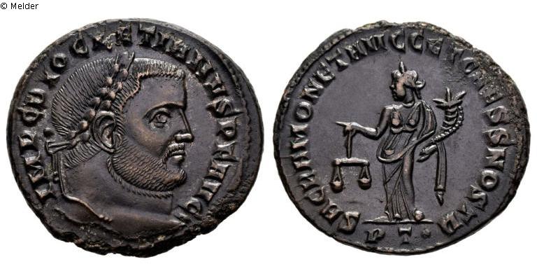 Follis (Roman Empire coin): Diocletian / Moneta, Libra, Cornucopia