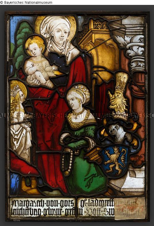 Provenienzforschung: laut Restitutionskartei (Eingangskarteikarte der Münchner Nummer 6311/12; Bundesarchiv, B323/658): "Herkunft: Aus deutschem Besitz an H. Göring/(Auskunft Hofer vom 14.4.1948)" [= Glasgemälde aus der 'Sammlung Göring' BNM Inv.-Nrn. 73/200-204, 2004/137]. Laut Restitutionskartei (Ausgangskarteikarte der Münchner Nummer 6311/12; Bundesarchiv, B323/658): "Depot possessor: Göring"; "Presumed Owner: Goering Coll[ection]"; "History and Ownership: [Hofer: Göring aus deutschem Besitz]/14.IV.48". Laut Alte Ministerpräsidentenkartei (Karteikarte der Münchner Nummer 6311/12; Bundesarchiv B323/766): "History and Ownership: Hofer: Goering, from German property, 14.IV.1948." Eingang/Receipt (Central Collecting Point München): 02.08.1945; Ausgang/Issue (Central Collecting Point München): 20.04.1949 (Ministerpräsident). Am 29.01.1957/23.02.1957 von der Treuhandverwaltung von Kulturgut über die Finanzmittelstelle München des Landes Bayern gemäß Übertragungsurkunde Nr. 61 (Glasgemälde aus dem Nachlaß von Hermann Göring) aus dem Besitz/der Vermögenseinziehung von Hermann Göring (1893-1946) in das Eigentum des Freistaats Bayern übergegangen: Nr. 5 der Übertragungsurkunde Nr. 61 (Glasgemälde aus dem Nachlaß von Hermann Göring). Am 01.02.1961 als 'Überweisung aus Staatsbesitz' an die Bayerischen Staatsgemäldesammlungen; von dort am 19.10.1973 vom Bayerischen Nationalmuseum übernommen. Aus der 'Sammlung Göring': aus dem 'Göring"-Glasgemäldekonvolut mit der Münchner Nummer 6311/1-13 sind dem BNM vom Freistaat Bayern folgende Objekte überwiesen worden (Münchner Nummer = BNM Inv.-Nr.): 6311/12 = 73/204, 6311/13 = 73/203. Aus der 'Sammlung Göring': aus Carinhall (?). Vorprovenienz: Niederlande/Jacques Goudstikker (?); vgl. "Records Concerning the Central Collecting Points ('Ardelia Hall Collection'): Munich Central Collecting Point" [Externer Link]: "7. Goudstikker: 6 Glasfenster". Vgl. "Vlug Report 25 December 1945" [Externer Link], S. 73 ("Present Location of Objects/AMERICAN ZONE"): "German 1511 Glass pane[sic = panel], Anna with Jesus/and Maria Achérat RM 2,500". Zu unbekanntem Zeitpunkt aus unbekanntem Eigentum/Besitz in die 'Sammlung Göring'. Aufgrund der Provenienzlücke(n) kann ein NS-verfolgungsbedingter Entzug nicht ausgeschlossen werden./A.G., 2018