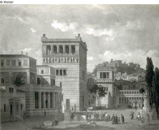 Found-Object Report | Object report Ideal view of the city of Athens in antiquity Lost Art-ID220636 Previous Next Artist / Creator Klenze, Leo von Birth 1784.02.29, Bockenem Death 1864.01.27, München Place of activityKassel; München TitleIdeal view of the city of Athens in antiquity Dating1862Object typePaintingGroup of reported objectsPaintingMaterial / TechniqueOil ; Canvas / painted Height 104.50 cm Width 131.50 cm Inventory numbermü8688Description Signatur: L.v. Klenze / 62; Blick von der Stadt mit der Akropolis im Norden. Am Hang vereinzelte Wohnhäuser der Altstadt. Im Vordergrund ist die Predigt von Paulus an die Athener dargestellt.; Zugang: nicht bekannt Read more Read less Holding Kulturgüter aus dem ehemaligen ReichsvermögenPublished since2001 Contact Kunstverwaltung des Bundes Herbert-Bayer-Straße 5 13086 Berlin Germany E-Mailprovenienzforschung@kvdb.bund.deHomepagehttp://www.kunstverwaltung.bund.de